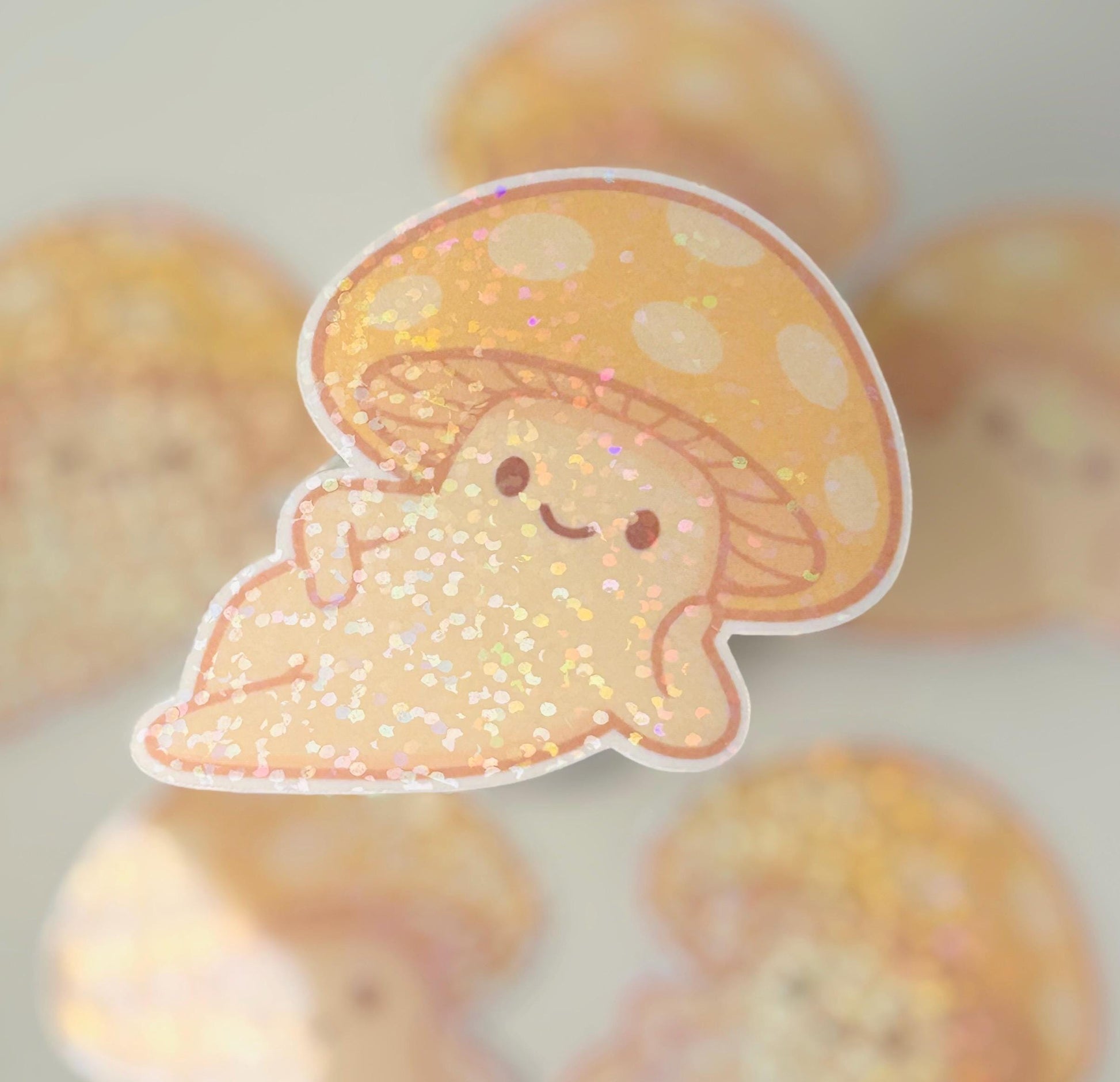 Add some sparkle and sass to your sticker collection with this holographic mushroom buddy! With one hand on their hip and a confident little smile, this pastel shroom is full of attitude and charm. Printed on high-quality glitter laminate, it’s perfect for decorating your journal, water bottle, laptop, or anything that could use a little fungi flair.